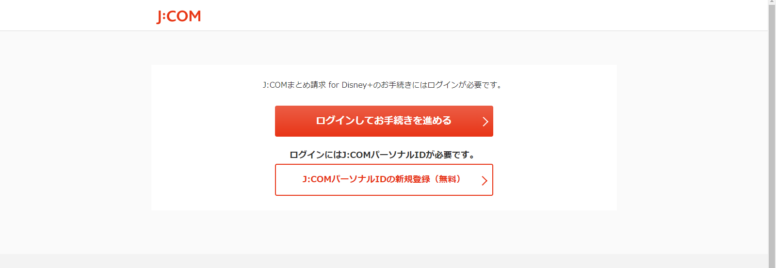 J:COMまとめ請求 for ディズニープラスの登録手順①「J:COMパーソナルID」を取得