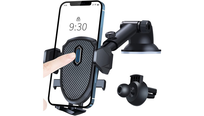 GPEESTRACのスマホ車載ホルダーです。吸盤式とクリップ式の2種類の取り付け方ができます。吸盤はボードなどに設置しやすい超強力ゲルで耐熱性もあり、汚れたら洗うことで粘着力が復活します。