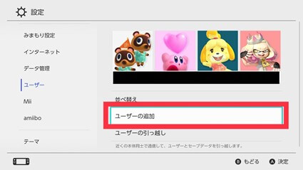 - ソフトを購入したユーザー(ニンテンドーアカウント)を選択