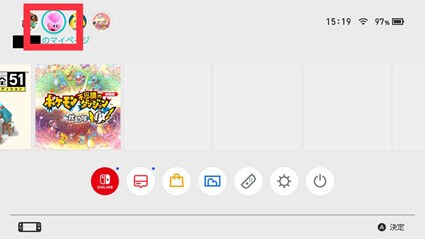 - HOMEメニュー左上のユーザーのアイコンを選択