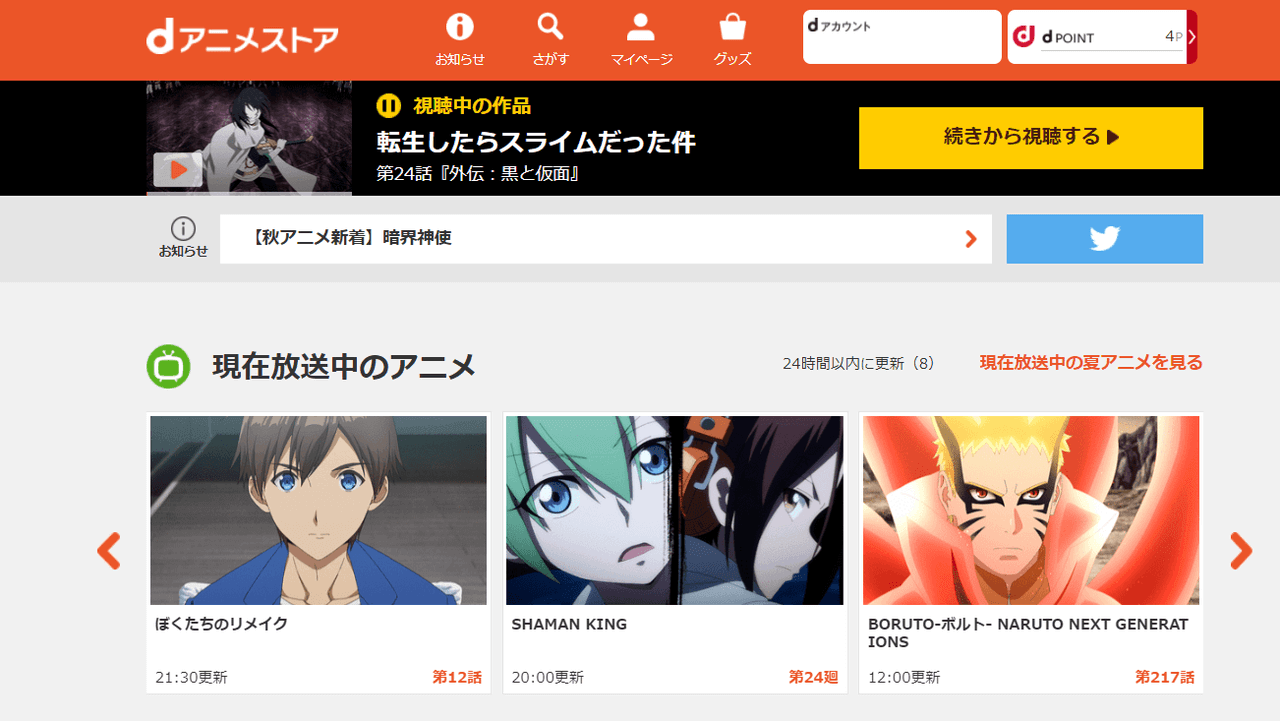 - 「dアニメストア公式サイト」を開く