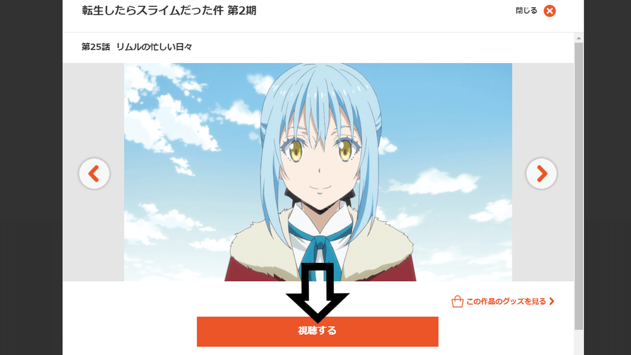 あとは「視聴する」をクリックすれば、アニメが再生されます。