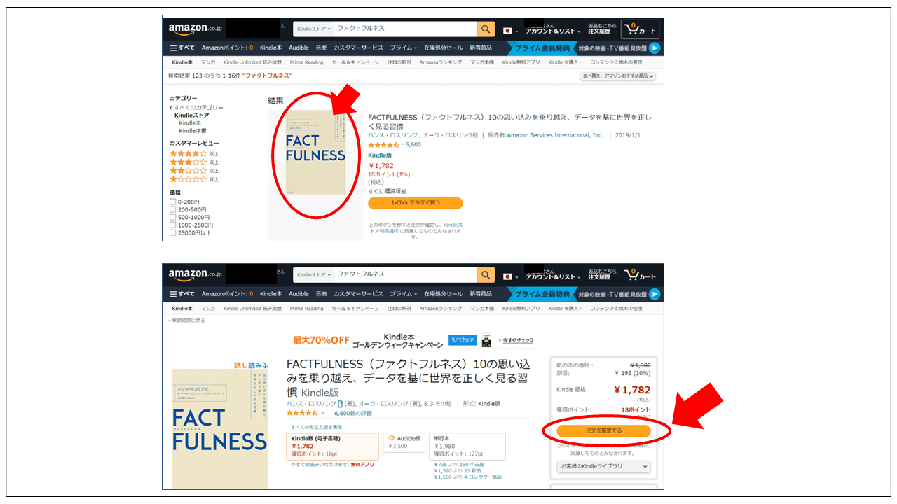 Kindle本の買い方|ブラウザ(Amazonサイト)