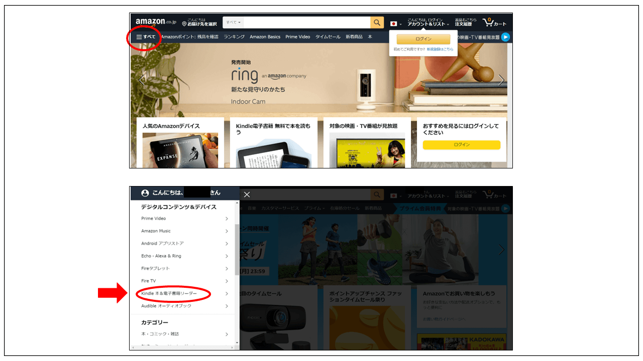 - Amazonにログイン