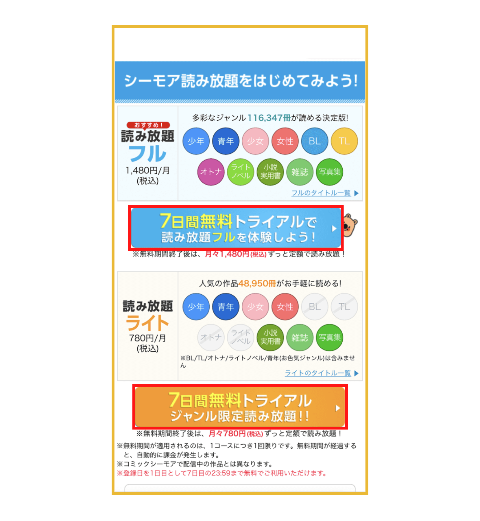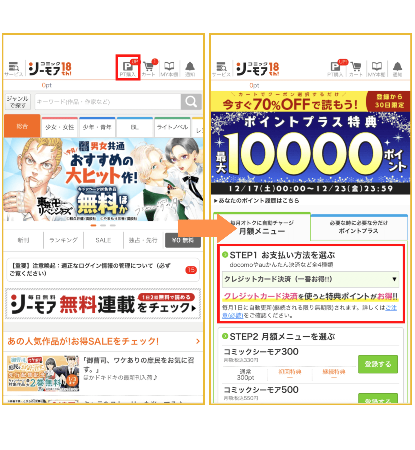 シーモア読み放題コースの登録方法