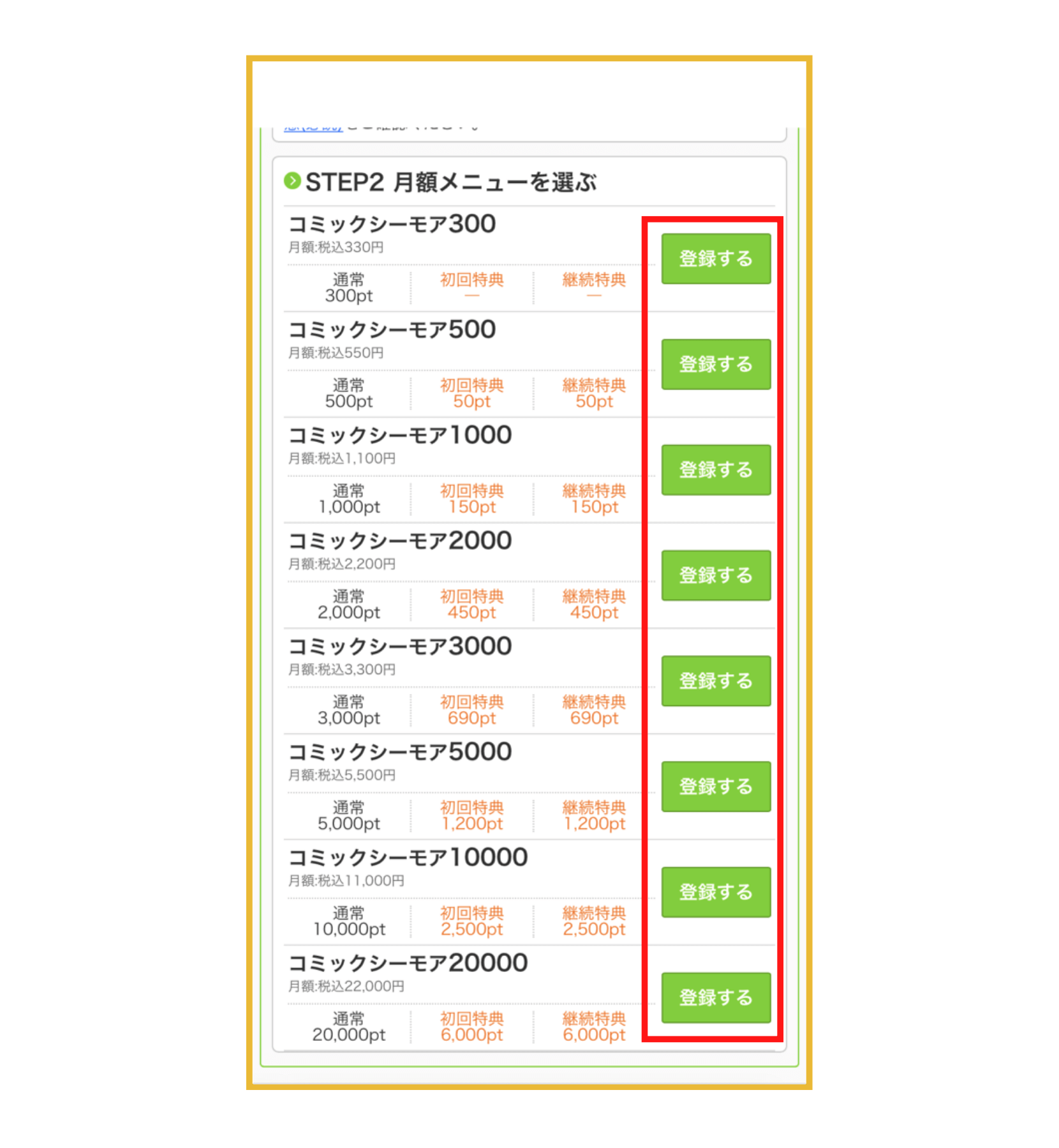 - お好みの月額メニューを選び「登録する」をタップする