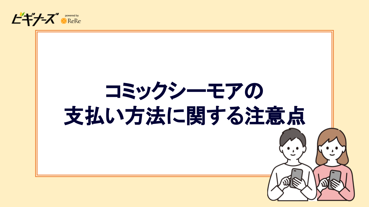 コミックシーモアでは、支払い時の決済方法やカードによっては注意が必要なケースがあります。以下の項目で解説していきます。