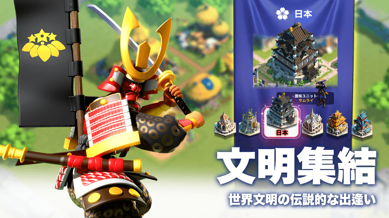 「Rise of Kingdoms ―万国覚醒―」は、世界の歴史上の英雄が多数登場する世界観の作品です。ゲーム開始時に国を選択することによって、その国の英雄や武将が仲間になるシステムを採用しています。