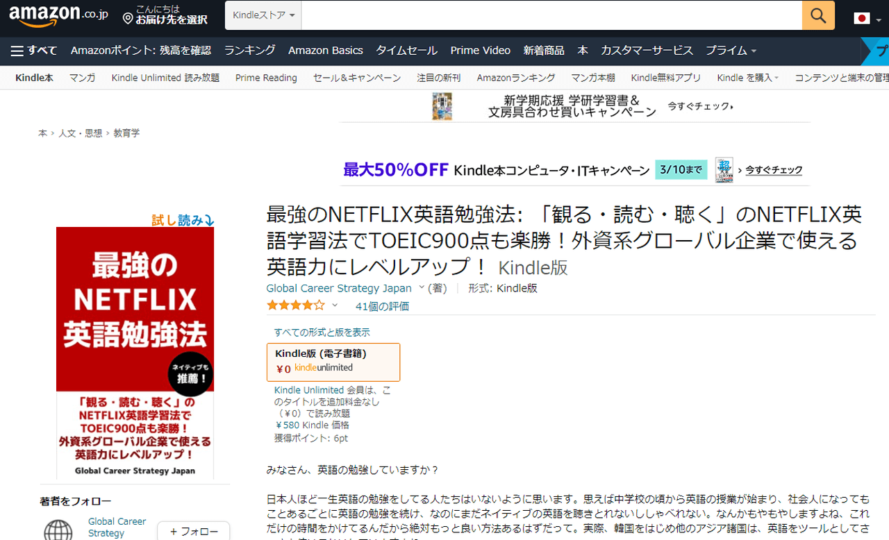 そして、電子書籍サービスを利用するなら、語学関連書籍の多いKindle Unlimitedが圧倒的におすすめです。