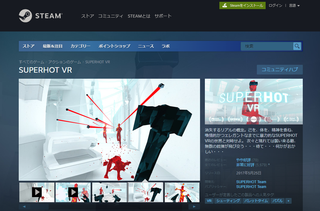 Steamの運営を手がけるゲーム開発会社「Valve Software」社が販売するVR-FPSです。同プラットフォームで購入・ダウンロードできます。