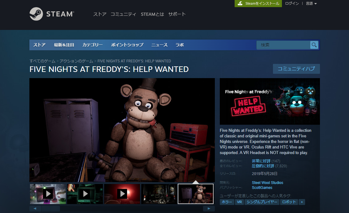 参考:Steamストア『Five Nights at Freddy’s: Help Wanted』