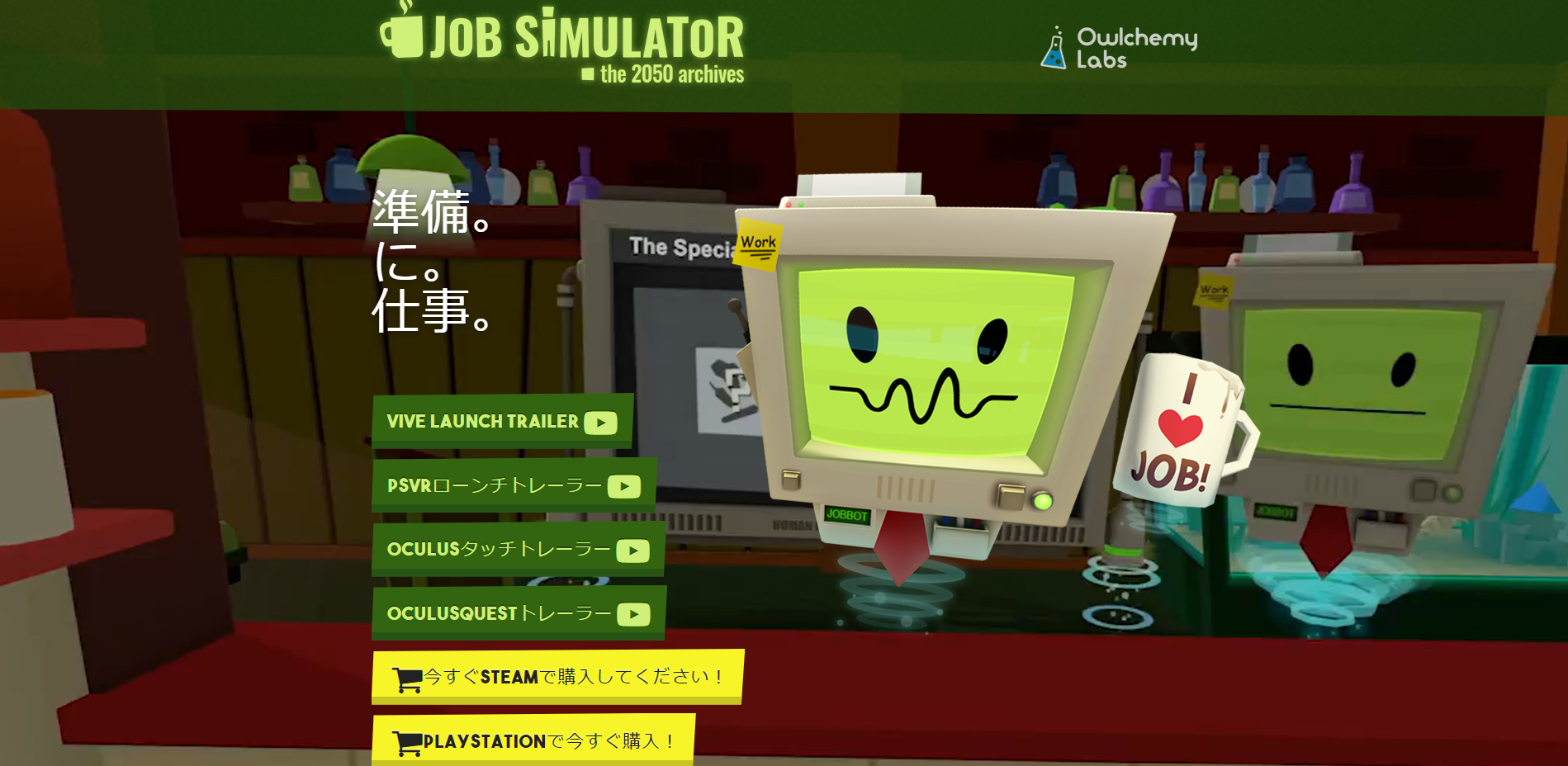 2016年に発売されたベストセラーVRゲームです。本作はほとんどの仕事をロボットがこなすようになった、近未来が舞台。お助けロボットである「JobBot」と一緒に様々な職業を体験するユニークなコンセプトのタイトルです。