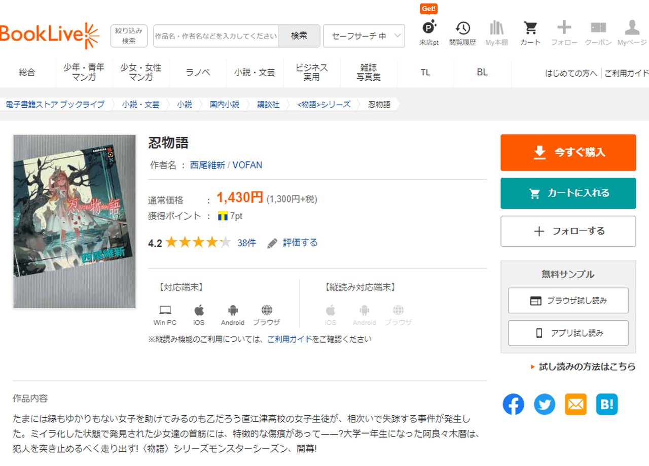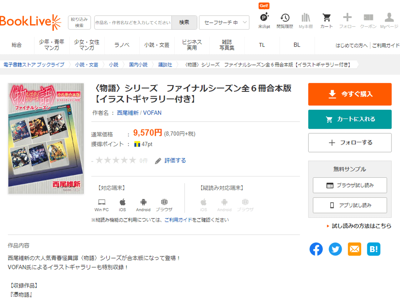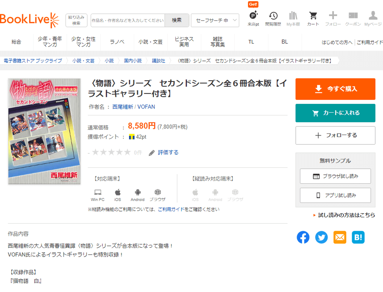 ブックライブの70%OFFクーポンをゲットして『物語シリーズ』を読む