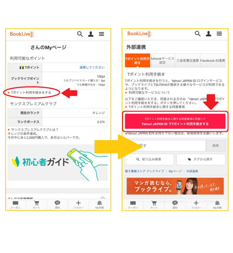 ブックライブでもVポイントを利用できるので、無料登録時にあわせてVポイントを連携しておくことをおすすめします。