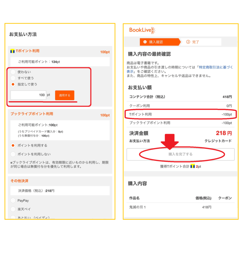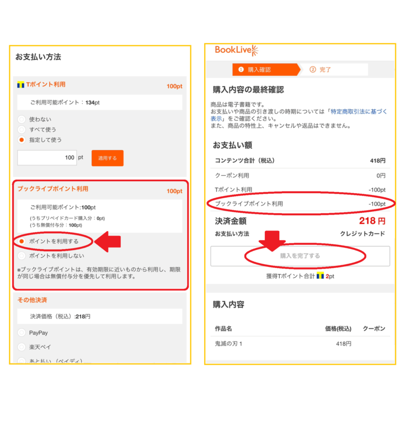 ブックライブポイントの使い方について説明します。使い方はVポイントを使って購入する方法と同様です。