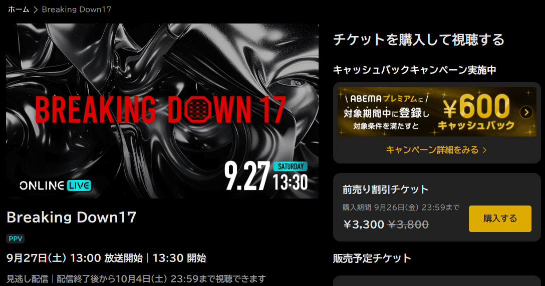 また、ブレイキングダウン17は、10月4日(土)23:59まで見逃し配信される予定です。