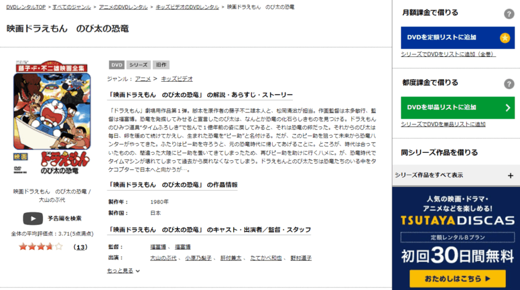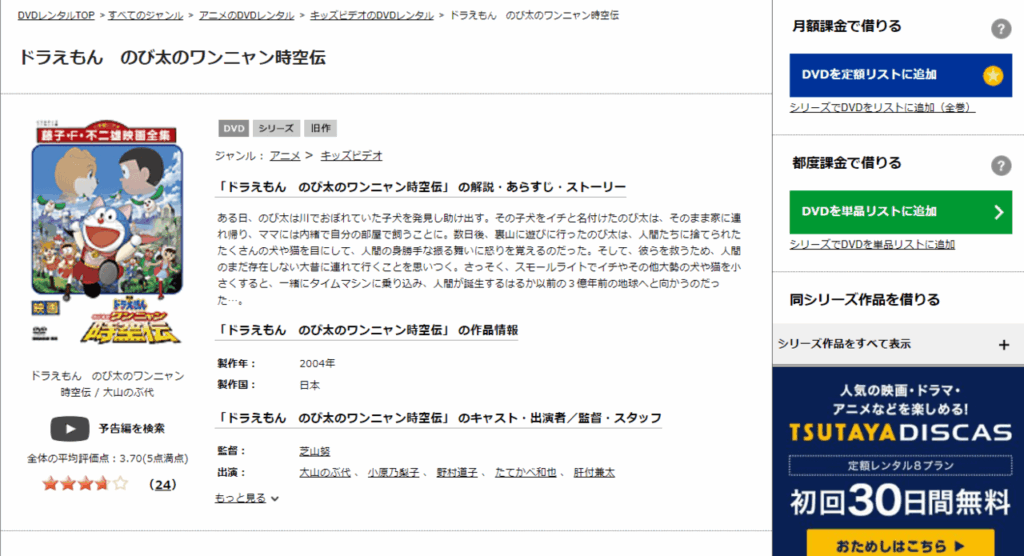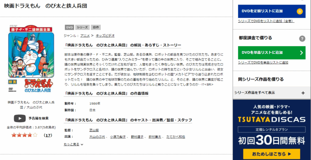 TSUTAYA DISCASで『映画ドラえもん』をレンタルする