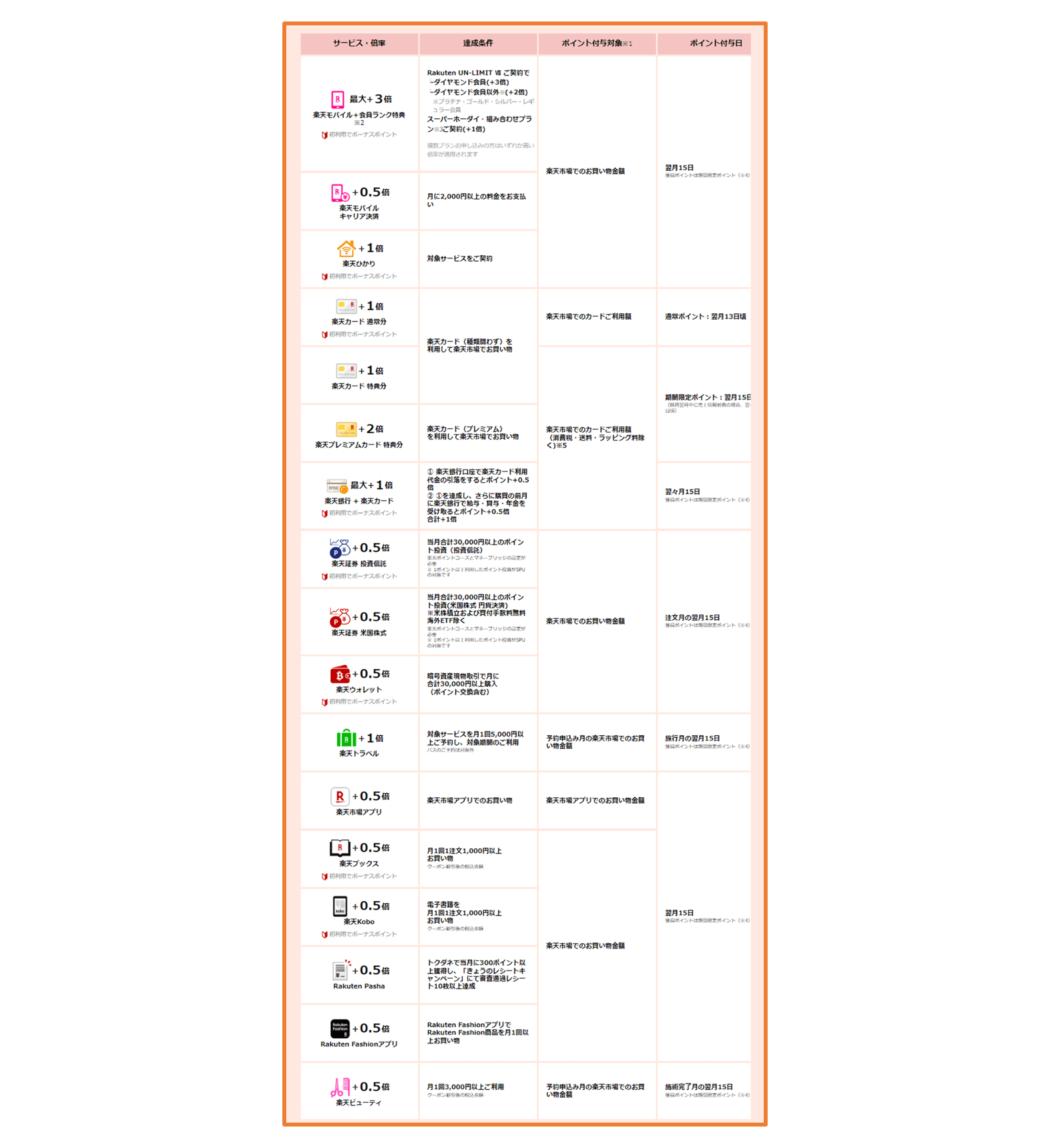 おすすめは、楽天Koboで電子書籍を月1回1注文1,000円以上お買い物すると+ 0.5%になる条件と、楽天カードを利用したお買い物で+ 2%になる条件です。楽天カードの利用対象が「楽天市場」と書かれていますが、「楽天Kobo」「楽天ブックス」も対象となっています。