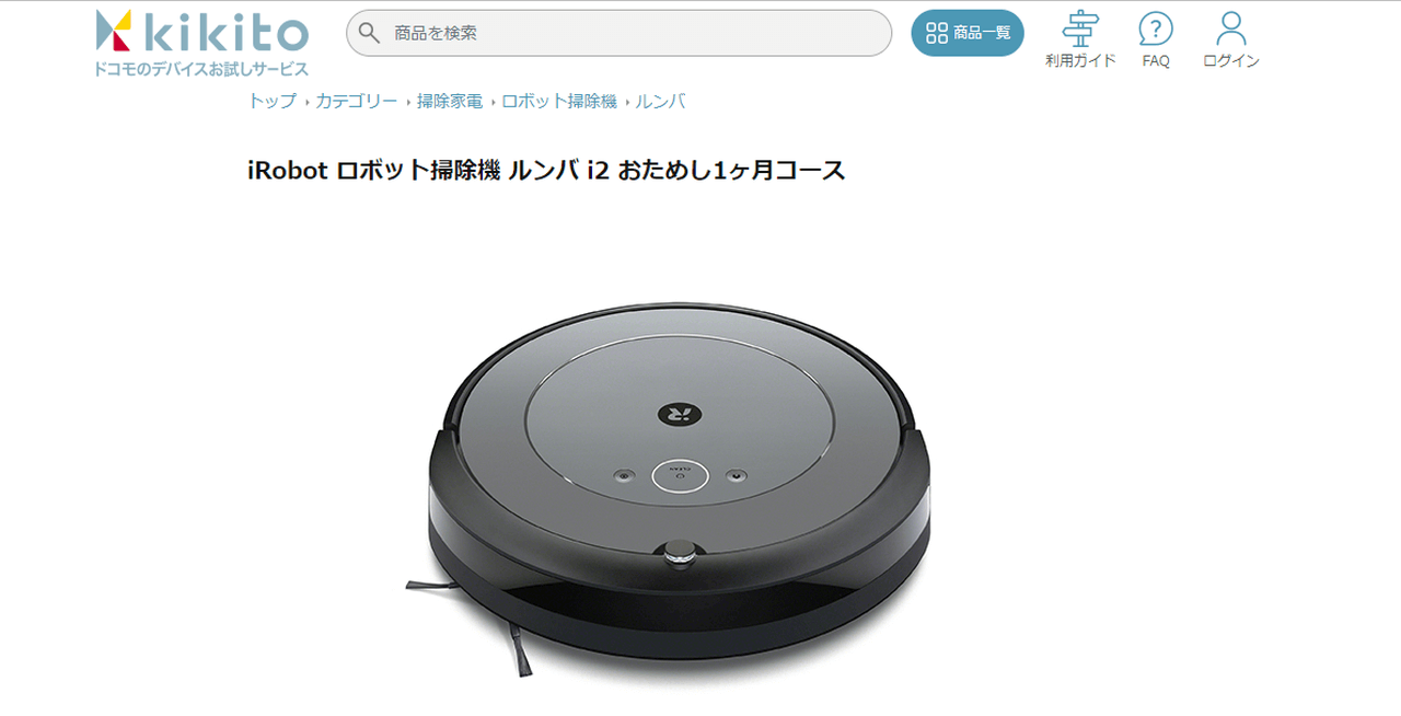 ドコモが提供するレンタルサービスkikitoでは、様々な種類のロボット掃除機が揃えられています。レンタル期間は30日〜で、月額1,980円~レンタル可能です。