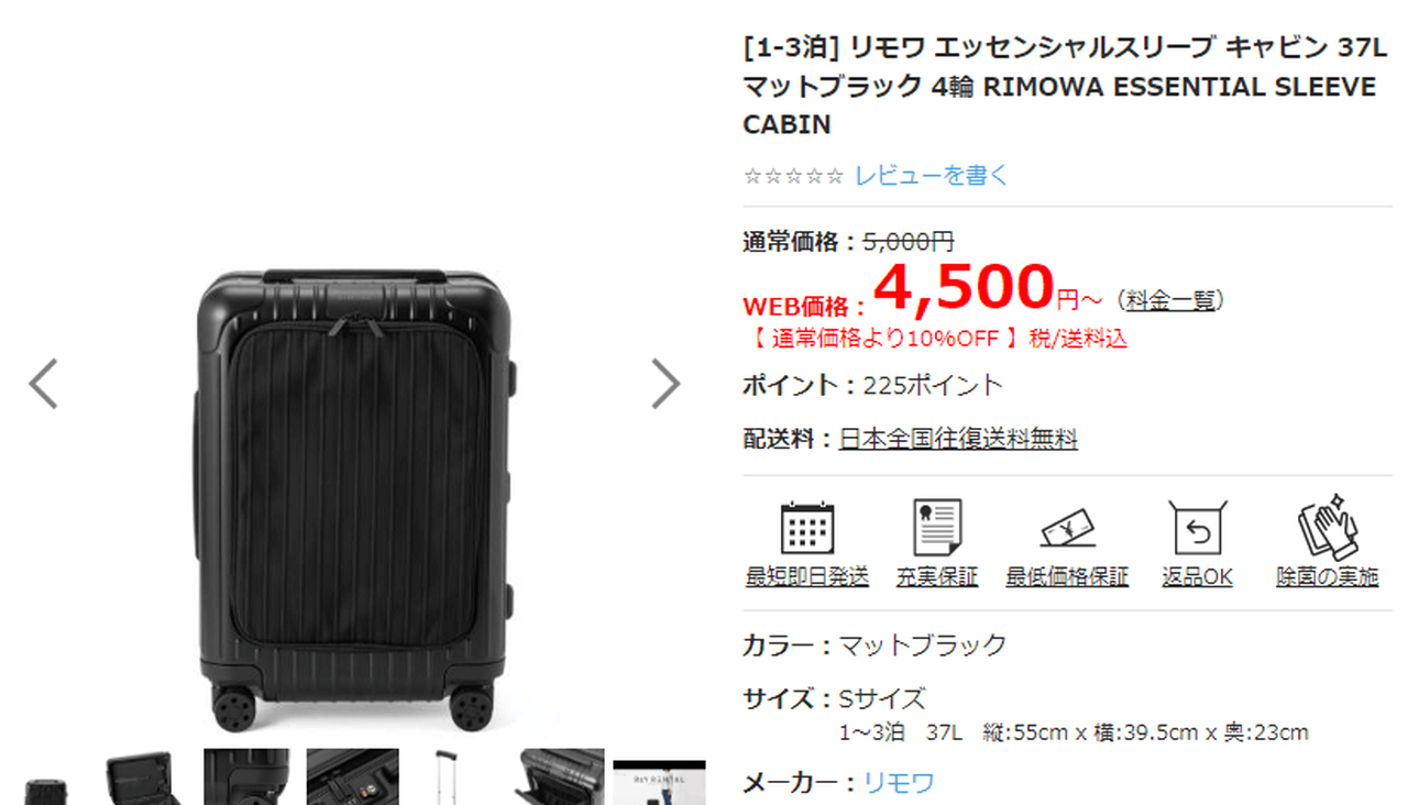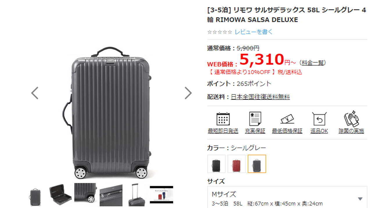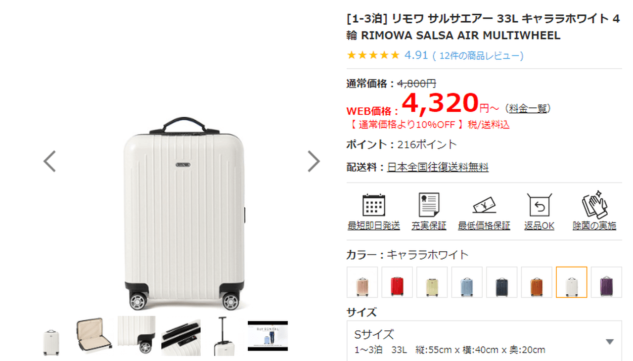 レンタルサービスを利用すれば、定価8万円台~のリモワのスーツケースが4,000円~程度の安い価格で借りられます。