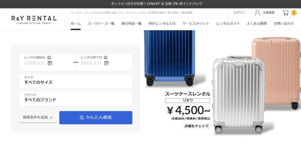 アールワイレンタルは、岐阜県の日本鞄材株式会社が運営する、スーツケースなどの旅行用品レンタルサービスです。