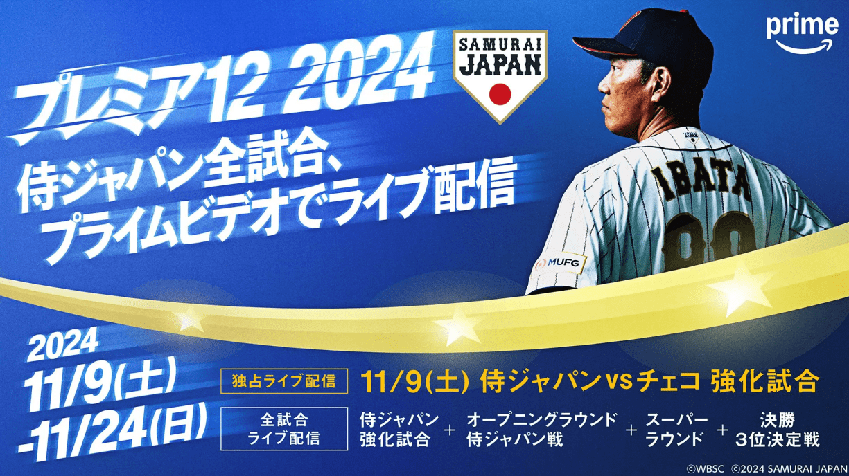 WBSCプレミア12はAmazonプライムビデオで日本代表戦を全試合ライブ配信され、新規登録なら30日間無料で視聴できます。