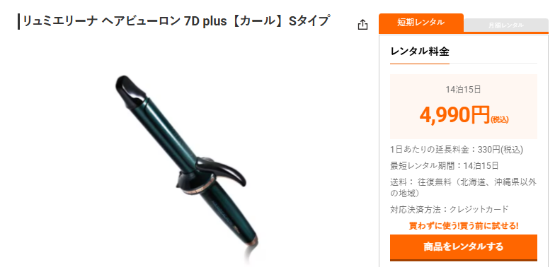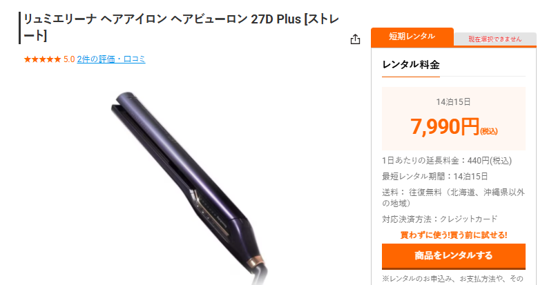 大事なイベントに合わせて短期間だけレンタルする、今まで使っていたヘアアイロンが壊れてしまったので一時的にレンタルするといった使い方ができます。