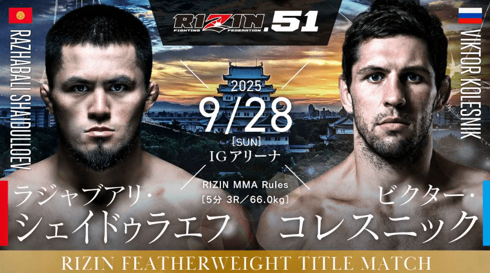 ラジャブアリ・シェイドゥラエフ vs. ビクター・コレスニック | フェザー級タイトルマッチ RIZIN MMAルール:5分3R(66.0kg) |