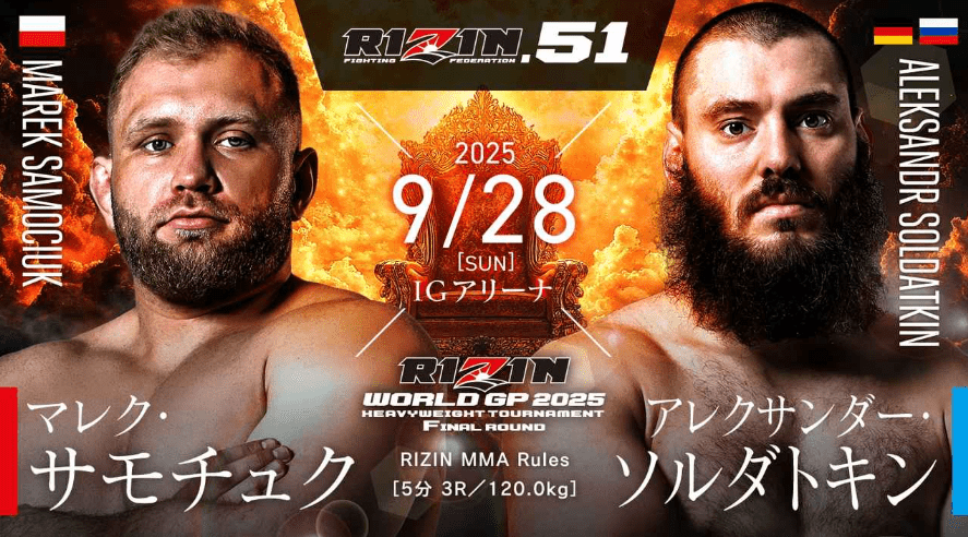 マレク・サモチュク vs. アレクサンダー・ソルダトキン | RIZIN WORLD GP 2025 ヘビー級トーナメント 決勝 RIZIN MMAルール:5分 3R(120.0kg) |
