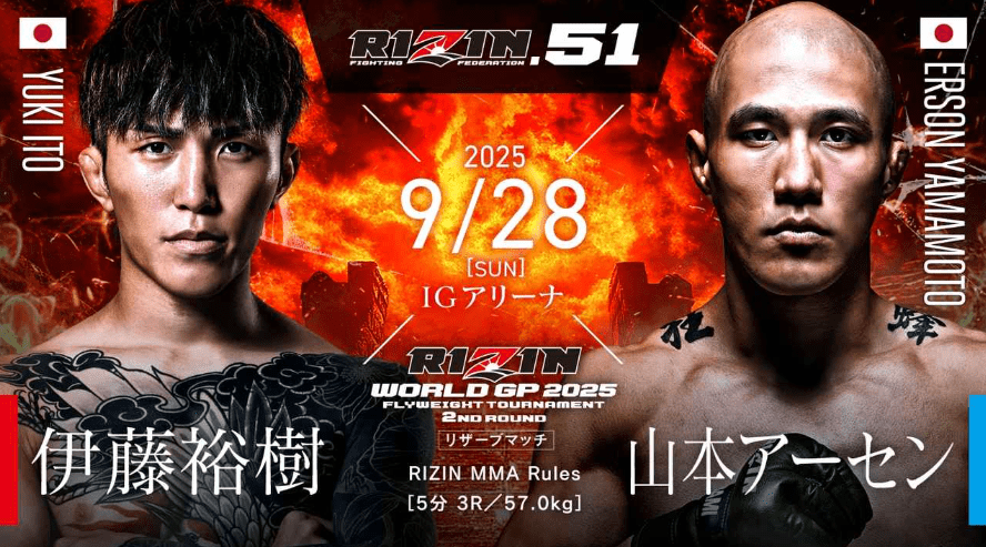 伊藤裕樹 vs. 山本アーセン | RIZIN WORLD GP 2025フライ級トーナメント2回戦 リザーブマッチ(※) RIZIN MMAルール:5分3R(57.0kg) |