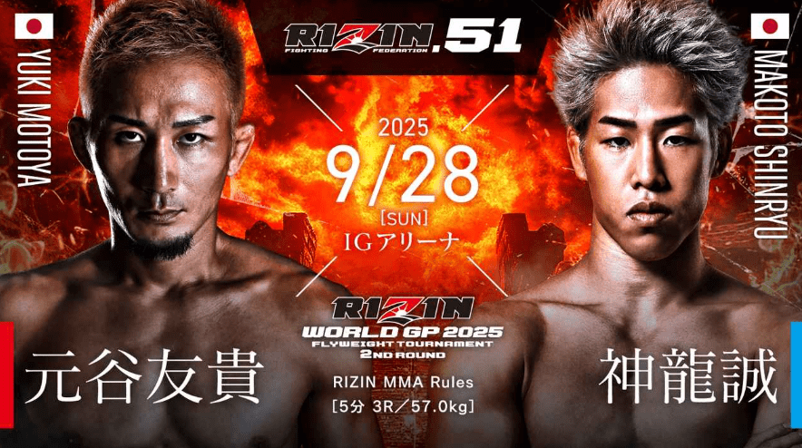 元谷友貴 vs. 神龍誠 | RIZIN WORLD GP 2025 フライ級トーナメント 2回戦 RIZIN MMAルール:5分 3R(57.0kg) |