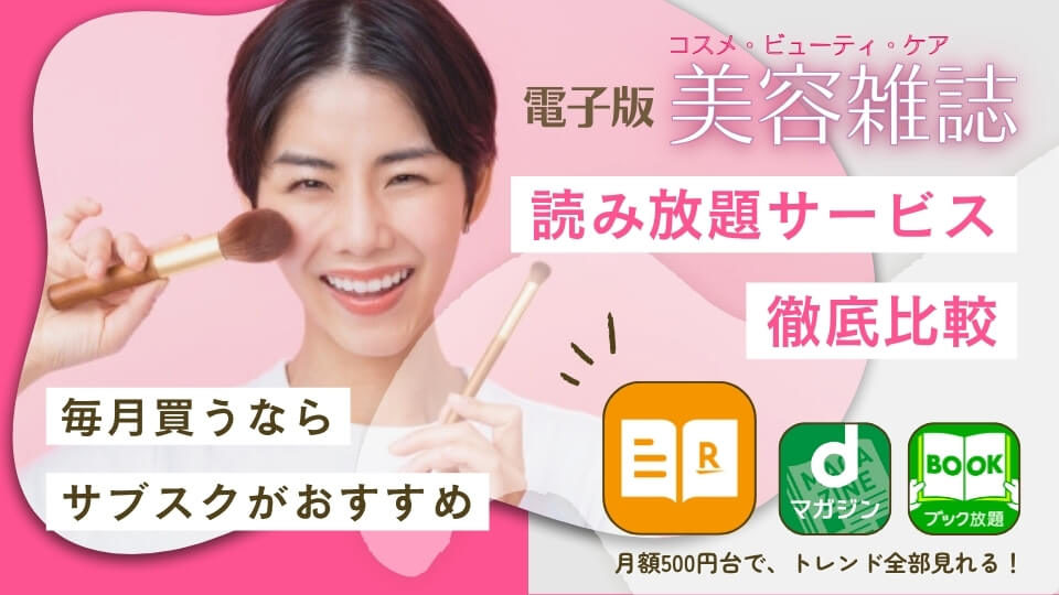 美容雑誌を毎号買っている方や、複数のコスメ・ビューティージャンルの雑誌を読み比べしたい方は、雑誌読み放題サブスクがおすすめです。