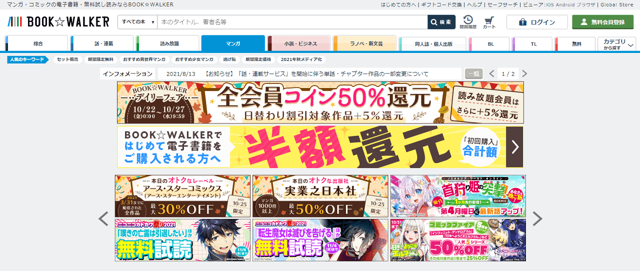 | 取り扱いジャンル | 漫画・ラノベ・小説・ビジネス実用書 など |