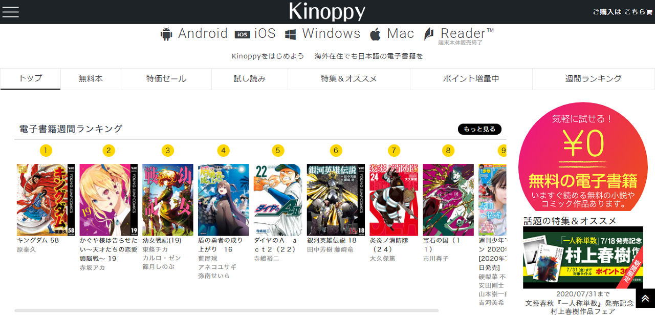 | kindleストア | 14.2万冊以上 | ・Amaoznポイントが貯まる&使える ・海外小説が豊富 |