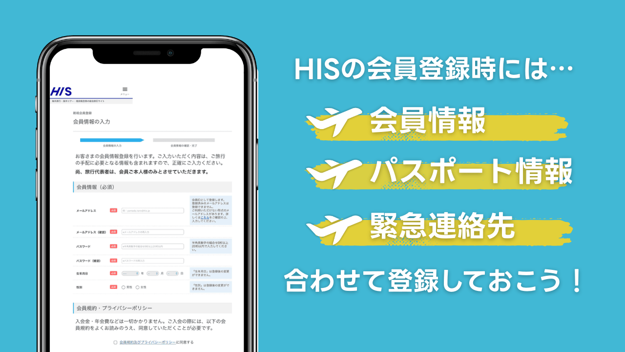 氏名や住所、電話番号など記入する項目が多いため、お目当てのセールが開始する前に登録しておきましょう。登録に必須な基本情報だけではなく、海外旅行を予定している人はパスポート番号や緊急連絡先などの登録も合わせて済ませておくことでよりスムーズに予約できますよ。