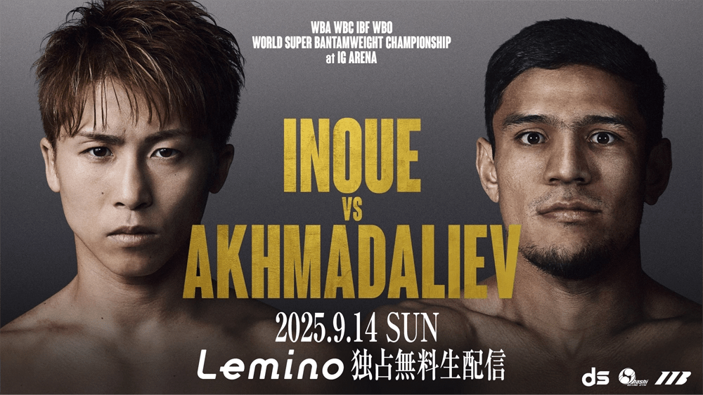 井上尚弥選手の最新試合「井上尚弥vsアフマダリエフ」が行われるLemino BOXINGは、9月14日(日)の14時40分から「Lemino」で生放送されます。