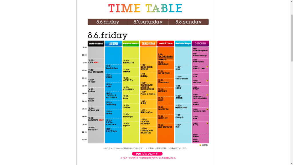 ライブのタイムテーブルも開催近日になると公式ホームページで確認できます。見たいアーティストをしっかりと決めて、マップでステージの位置関係も確認しつつ当日の動きを決めて、できる限り好きなアーティストのライブを堪能できるように準備しましょう!