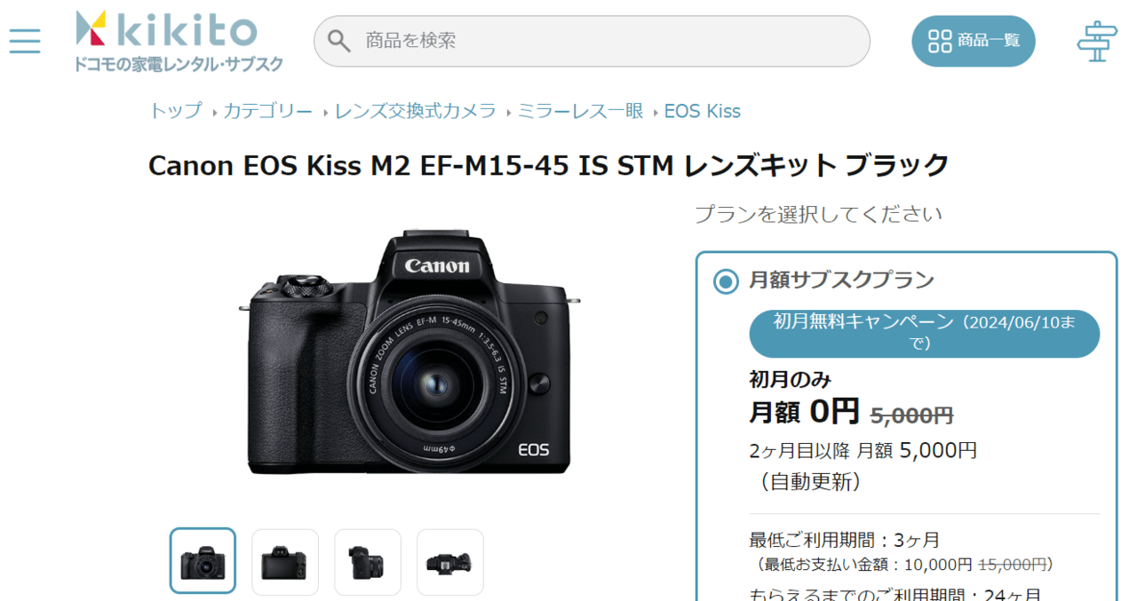 kikitoでCanon EOS Kiss M2をレンタルする