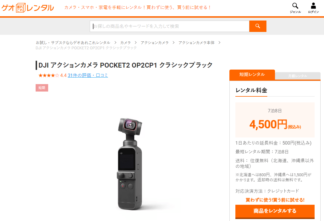 ゲオあれこれレンタルでOSMO Action3をレンタルする