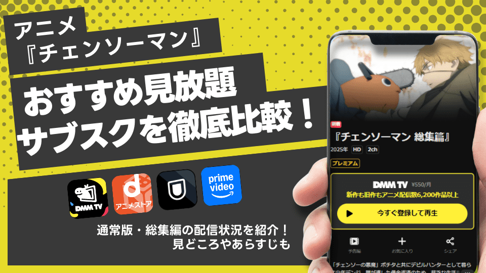 チェンソーマンのアニメを無料視聴できるサブスク動画配信サービスを紹介!見逃しもイッキ見も!