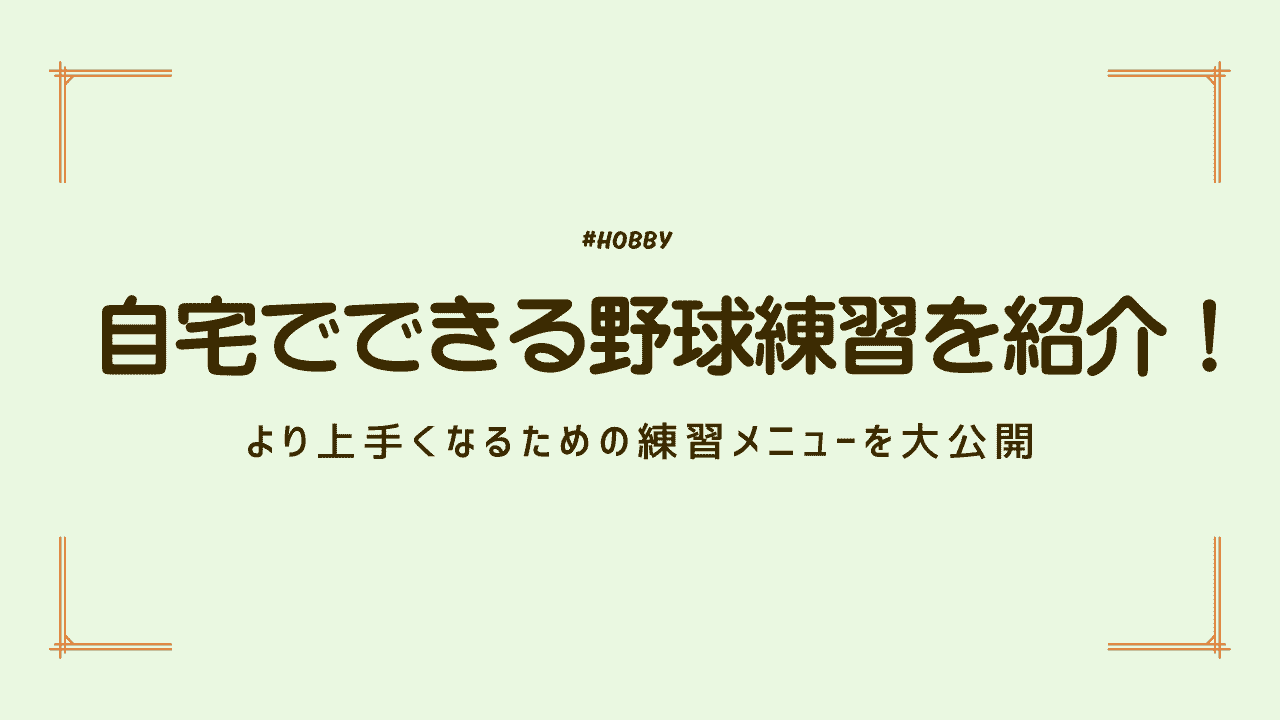 自宅でできる野球練習を紹介!より上手くなるための練習メニューを大公開