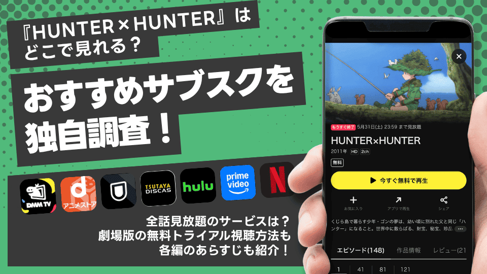 HUNTER×HUNTERアニメ全話を無料で見られるサブスクはどこ?動画配信サービスの無料体験でお得に視聴!