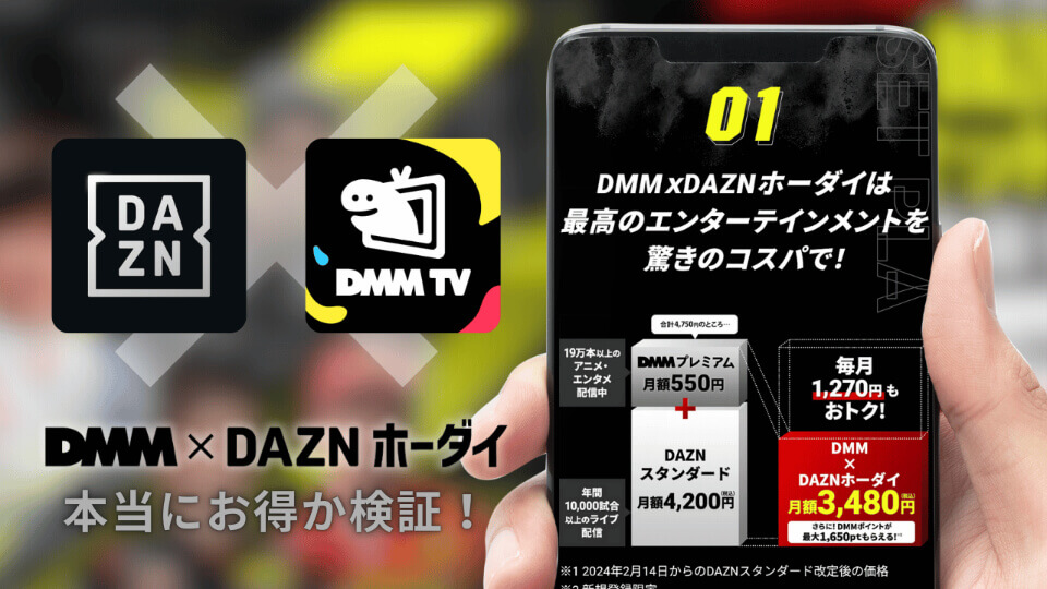 DMM×DAZNホーダイの基本情報をまとめて、月額料金など本当にお得なのかを比較検証しました。 また登録前に確認してほしいD...